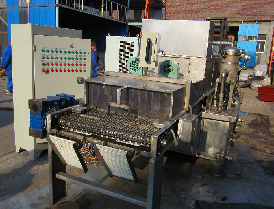 通過(guò)式清洗機(jī)是針對(duì)機(jī)械加工行業(yè)專業(yè)制作的專用清洗機(jī),零件在加工制作完成后,在裝配前需要對(duì)零件表面的進(jìn)行清洗,本設(shè)備就是針對(duì)以上情況專業(yè)制作的清洗設(shè)備,首先上道工序完成的加工件隨流水線自動(dòng)進(jìn)入到清洗機(jī)內(nèi),先進(jìn)行清洗處理,清洗后依靠頂部的風(fēng)機(jī)把工件表面的清洗液吹掉,再進(jìn)入漂洗箱進(jìn)行漂洗,漂洗后再用風(fēng)機(jī)進(jìn)行吹干,吹干后再有一段時(shí)間的自然晾干,整套設(shè)備動(dòng)由PLC全面自動(dòng)控制,清洗時(shí)還配有過(guò)濾、除油、油冷機(jī)、熱電耦等輔助裝置。