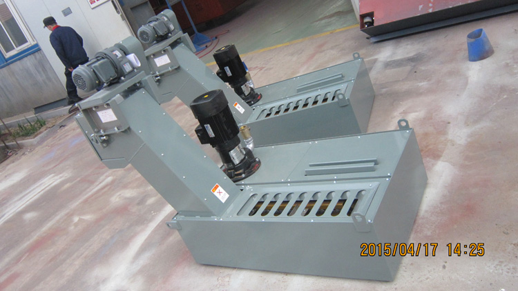 磁性刮板排屑器是在普通刮板排屑器的基礎(chǔ)上,在底板的底部安裝長條裝磁鐵,用于把乳化液中的鐵磁性雜質(zhì)吸附到底部,方便刮板刮出。主要用于乳化液中含有細(xì)小鐵屑或鐵粉的場所。 磁性刮板排屑器選型和普通刮板排屑器的方式是一樣的。